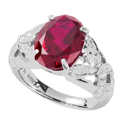 価値を最も左右するのは色で、濁りの少ない強い彩度と適正な明度を備えた“鮮やかな赤”が高評価です。なかでも国際市場で用いられる「ピジョン・ブラッド(Pigeon Blood Red)」の呼称は、濃密で均一な赤色域にある石に対し、厳格な基準やマスターストーンを用いて判定されます。こうした色域は希少性が高く、産地情報や処理の有無が裏付けられると、同サイズでも価格差が大きく表れます。
