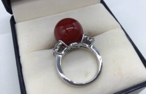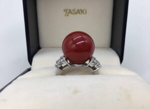 リング単体での評価では、珊瑚の色味だけでなく赤珊瑚 指輪としての仕上がりや、Pt900素材との調和も確認ポイントになります。地金素材の良さ、加工精度、保存状態が全体の完成度を高め、赤珊瑚を買取する際の評価額に反映されます。箱が付属している場合は保管状態の安心感が加わるため、査定上の微妙なプラス材料になります。