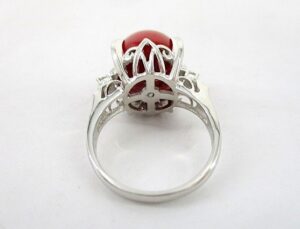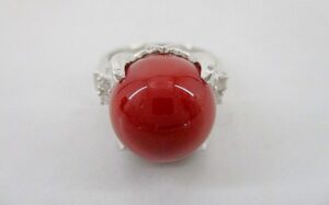赤珊瑊 指輪としてのデザイン性や石のセッティング、Pt900の地金部分の状態も査定に影響します。全体のバランスが良いと評価が高くなります。