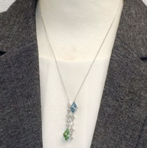 このたびは大切なネックレスをお任せいただき、誠にありがとうございます。今回のお品物は、ミキモトらしい端正な作りに、アクアマリン、グロッシュラーガーネット、そしてダイヤモンドを組み合わせた存在感のあるデザインでした。ロゼンジシェイプの石の取り合わせは、色のコントラストが美しく、胸元に置いたときに立体感が出やすいのが魅力です。こうした多石デザインは、単に「石が何カラットあるか」だけでは語れず、石同士の相性や台座の完成度が価値を左右します。だからこそ、アクアマリン 買取をご検討の方には、ジュエリーとしての総合評価で見てもらうことが大切だとお伝えしています。