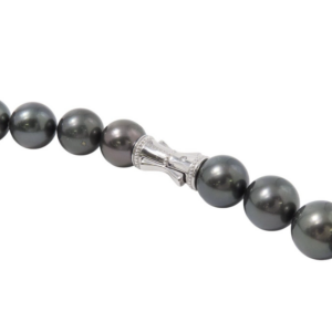 黒真珠ネックレス 相場を左右する最も大きな要素は、真珠そのものの質と、連全体の統一感です。黒真珠は、ただ色が濃いだけではなく、光を受けたときのテリ、表面のなめらかさ、干渉色の美しさ、珠ごとの色味のそろい方が重要です。ネックレスの場合は一粒ごとの美しさだけでなく、首元に並んだときに自然で上品に見えるかも大切になります。黒真珠 値段 一粒という見方もありますが、黒真珠 ネックレスでは一粒単位よりも連としての完成度がより重視されます。黒真珠 相場や黒真珠 買取相場を調べる際も、この連全体の印象差が価格に大きく影響することを押さえておきたいところです。