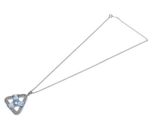 ネックレスに使われているアクアマリンは色味の均一性、透明度、輝きが査定の大きなポイントです。出張買取では光の角度を変えて石の魅力を直接確認できます。傷や内包物の有無もチェックし、ジュエリー全体の価値を総合的に判断します。石の個性や透明感、光沢の持続性も査定額に反映します。色の深みや照明での見え方も確認し、市場での評価も考慮します。さらに、将来の資産価値や再販時の人気も踏まえた総合評価を行います。細部まで丁寧に確認しました。