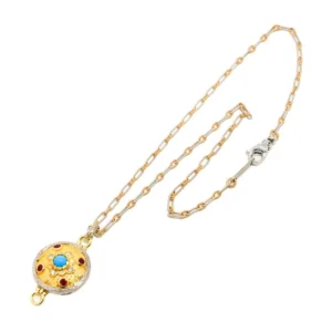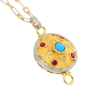 このたびは大切なお品物をお任せいただき、心より感謝申し上げます。今回お持ち込みいただいたネックレスは、トルコの宝石として広く知られるトルコ石を中心に、ルビーとダイヤモンドが美しく調和した大変魅力的な一品でした。トルコの宝石としての歴史的背景を持つトルコ石は、鮮やかなブルーが特徴であり、装飾性だけでなく文化的価値も評価されやすい宝石です。さらに、ルビーの深みある赤とダイヤモンドの輝きが組み合わさることで、ジュエリーとしての完成度が非常に高い印象を受けました。