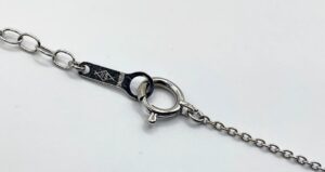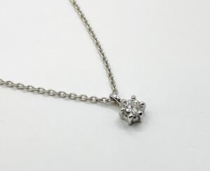 まず査定では、ダイヤモンドの質感や見え方、表面の照り具合を観察し、色味や透明度などを確認しました。天然ダイヤモンド 0.1ctの相場はカットや品質によって開きがあり、同じカラット数でも輝きの違いが査定額に反映されることがあります。今回のネックレスのダイヤモンドはバランスのよいカットと透明感があり、1点としての評価につながりました。