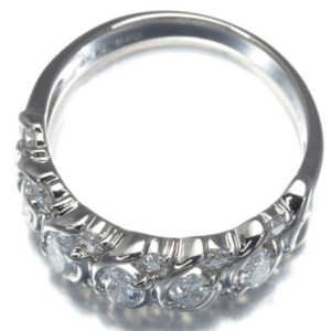地金はPt950で、宝石を支える素材として安定感があります。プラチナ相場は変動しますが、ダイヤモンドの1カラットの値段を考えるうえで、地金の価値が下支えになる場面は少なくありません。査定では、リングアームの歪み、打痕、石座の摩耗、爪の高さや左右差を確認します。わずかな緩みでも将来的な石落ちリスクにつながるため、状態説明は丁寧に行います。