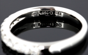 リングの素材がPt950の場合、地金相場の影響を受けます。ここはダイヤモンドの買取を鑑定書なしで行う場合でも、比較的説明しやすい評価軸です。刻印の読み取り、摩耗の程度、変形の有無を確認し、リングとしての完成度を見ます。Pt950は粘りがあり傷が目立ちにくいと言われることもありますが、実際のコンディションは一点ずつ違うため、鑑定書なし買取ではリング全体の状態確認がより重要になります。