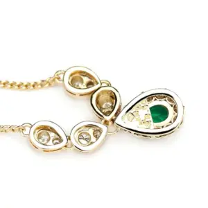 また、今回のネックレスはダイヤが0.50ctとしっかり入っており、1カラットのダイヤの値段の相場を意識される方にも分かりやすい構成でした。ダイヤは4Cで価値が分かれますが、0.50ct前後でも、輝きの良いものは見栄えが大きく変わります。色石とダイヤが組み合わさったジュエリーは、宝石単体の比較だけではなく、全体のデザインとしての完成度やブランドの評価も絡むため、エメラルドの1カラットの値段を単純に当てはめるより、実物を見て総合的に判断するほうが納得感が高まります。