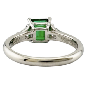 相場の見方としては、まずPt900の地金相場の影響があります。加えて、エメラルドの需要やデザインの人気、ブランド評価が重なって、最終的な査定額は変わります。エメラルドは同じカラットでも“見た目の濃さ”や透明感の印象が違い、エメラルドの値段が一律になりにくい宝石です。今回も、1.28ctという情報だけで判断せず、実際のエメラルドを光に当てて、色むらや内包物の見え方、欠けやすい角の状態を確認しました。査定時に見たポイントの詳細は後半でまとめますが、特にエメラルドの表面コンディションと留めの安定感は、出張買取でも必ず押さえる要点です。