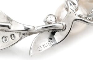今回お預かりしたお品物は、ミキモトならではの上品な造形が印象的なリーフモチーフのブローチで、K18素材のしっかりとした地金にダイヤモンドがあしらわれた、華やかさと落ち着きを兼ね備えたデザインでした。葉の流れを表現した曲線の作り込みが非常に丁寧で、ジュエリーとしての完成度の高さが感じられる一点です。こうした立体感のある意匠は、単なる素材価値だけではなく、ブランドジュエリーとしての評価にも関わってきます。