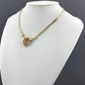 色石は、カットが整っているほど美しさが際立ちます。インペリアルトパーズの価値を評価するうえでも、面の取り方が雑でないか、左右のバランスが崩れていないか、欠けやすい角が保護されているかを見ます。ネックレスは着用時に石が揺れるため、わずかな欠けや擦れが目立つこともあり、表面状態の確認が重要です。インペリアル トパーズの見分け方としても、カットが丁寧であることは、ジュエリー全体の信頼性を補強する要素になります。