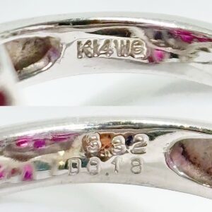 査定の中では、ルビーの指輪の値段を左右するポイントをいくつか確認させていただきました。色味の均一性や透明度、ダイヤのセッティング状態、K14WGの地金の状態など、細かな部分までチェックすることで、最終的な評価に反映しております。こうした観点は、これからルビーの指輪の値段を知りたい方や売却を検討されている方にとっても重要なポイントとなります。
