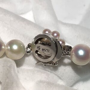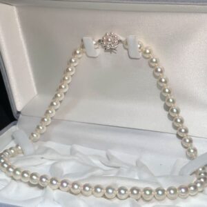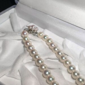 査定の際には、まず全体の印象を確認し、その後で一珠ずつの状態や連なり具合を丁寧に拝見しました。本真珠特有の自然由来のえくぼや微細なキズは見受けられましたが、目立つダメージはなく、まだまだお使いいただける良好なコンディションでした。こうした点もアコヤ真珠の買取相場を判断するうえでプラス材料となります。