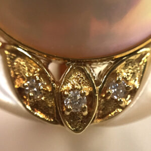 査定の際にもお客様から「マベパールの価値はどのくらいあるのでしょうか」とご質問をいただきました。マベパールの価値は、サイズや色味、テリと呼ばれる光沢の強さなど、複数の要素によって変わります。とくに大粒の珠でテリが美しいものは評価が上がりやすく、マベパールの価値を考えるうえで重要なポイントになります。今回のお品物は14mmと比較的大きなサイズで、柔らかい光沢が印象的でした。