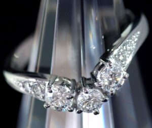 リングにセットされたダイヤモンド0.46ctは、カットや透明度、輝きの強さが査定に直結します。光の反射や石留めの安定性を確認し、婚約指輪を保管していた状態を踏まえた総合評価を行います。石の輝きが良ければジュエリー全体の価値も高まります。出張買取では、自然光や照明下で石の輝きを確認でき、婚約指輪の保存状態による影響も加味して評価できます。