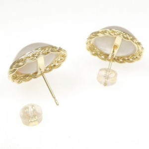 マベパール ピアスでまず確認するのは、真珠そのものの照りと表面の見え方です。マベパール とは、半球状の形を活かした真珠で、一般的な丸珠とは異なり、広い面で光を受けることで独特のやわらかな輝きを見せます。そのため、マベパール ピアスでは正面から見たときの光沢の広がり方がとても重要です。表面に目立つ傷やくもりが少なく、照りが均一であれば、マベパール 価値は見込みやすくなります。色味が上品で、角度によって自然な艶が感じられるものほど、ピアスとしての印象も良くなります。