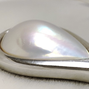 マベパール 価値 色という観点では、単純に白い、ピンク系、シルバー系といった色味だけではなく、面全体にどのような艶が広がるかが非常に重要です。マベパールは広い面を持つぶん、光沢の質がそのまま上質感に直結します。やわらかな照りの中に奥行きが感じられるもの、表面に大きな傷やくもりが少なく、正面から見たときのまとまりがよいものは、マベパール 価値を見込みやすくなります。今回のマベパール ペンダントトップも、正面から見たときの印象が整っており、胸元に置いた際の上品さが想像しやすい状態でした。マベパール 価値は、派手さよりも、静かな気品がどれだけ伝わるかで差が出る素材だとあらためて感じます。