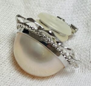 K14WGというホワイトゴールドの素材は評価に安定感を与え、刻印が明確であることは査定の信頼性を高めます。素材そのものの価値も、マベパールの価値に間接的に影響します。