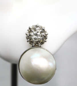 マベパール ピアスの査定で中心になるのは、真珠の光沢と表面の美しさです。マベ真珠は面が広いぶん、テリが深いと存在感が増し、顔まわりが明るく見えます。えくぼや小傷は真珠の特性として出ることがありますが、目立つ位置に集中していないか、左右で印象が大きく違わないかを確認します。マベパール 見分け方としては、光を当てたときの艶の立ち上がりや、くすみの出方を観察するのが基本です。経年による乾き感や黄ばみが強い場合は、マベパール ピアスの評価に影響することがあります。