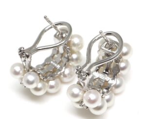今回お持ち込みいただいたのは、上質なパールに繊細なメレダイヤをあしらった、**ミキモト**ならではの上品なピアスです。K18素材のしっかりとした重量感(左右合計約10.7g)があり、耳元で存在感を放ちながらも日常使いからフォーマルまで活躍するデザインが魅力です。
