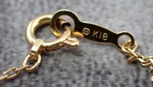 K18の刻印が明確であることは安心材料になります。重量だけで判断されがちな20g以下の18金ネックレス買取ですが、実際にはコンビ素材や留め具の作りも含めて評価します。今回はK18YGがパールと調和しており、デザイン性の面でもプラス評価となりました。