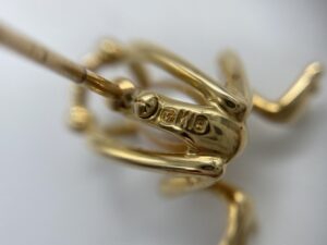 次に確認するのが地金部分です。K18YGの刻印が明確に確認できるか、摩耗が進んでいないかをチェックします。18金 イエローゴールド の買取価格は、18金買取相場1gの今日の変動を受けますが、ブローチのようなデザイン性の高いジュエリーでは、重量だけでなく作りの良さも見られます。k18yg とは何かを理解しておくことで、査定内容にも納得しやすくなります。