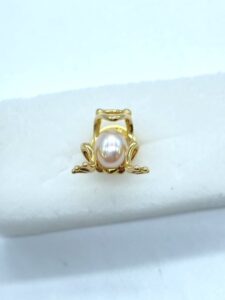 このたびは大切なジュエリーをお任せいただき、心より感謝申し上げます。今回拝見したブローチは、日本を代表するジュエリーブランドであるMIKIMOTOらしい上品さが際立つお品でした。淡水真珠の柔らかな光沢と、K18イエローゴールドの温かみのある色合いが調和し、装いに自然な華やかさを添えてくれるデザインが印象的です。