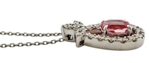 今回お持ち込みいただいたネックレスは、サファイアとダイヤモンドが組み合わされた上品なデザインのお品物でした。中央には約0.78ctのサファイアがセッティングされており、その周囲にダイヤモンドがあしらわれた華やかなジュエリーです。サファイアの中でもピンクとオレンジが混ざり合った独特の色合いを持つ「パパラチアサファイア」は特に希少性が高く、世界的にも人気の高い宝石として知られています。