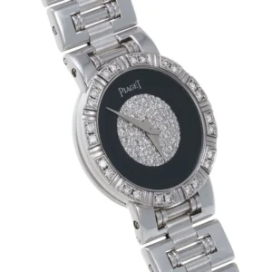 今回ご依頼いただいたお品物は、ラグジュアリーブランドとして名高いピアジェの中でも、ダイヤ装飾が施された非常に華やかなモデルでした。ピアジェ ダイヤ 時計としての魅力が随所に感じられる一本で、ブラックのフェイスとダイヤモンドの輝きが絶妙に調和し、上品さと存在感を兼ね備えています。特にピアジェ 時計 レディース ダイヤとしての需要が高く、中古市場でも安定した人気を誇るため、ピアジェ ダイヤ 時計としての評価は非常に高い水準で推移しています。
