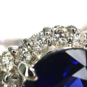 さらに、サファイアリングの買取価格は、脇石であるダイヤモンドの品質やセッティングの丁寧さによっても左右されます。今回のように0.49ctのダイヤモンドが使用されている場合、メレダイヤとしての評価も加味しながら、総合的に価値を見極めていきます。サファイアを出張買取で査定する際には、このように複数の要素を総合的に確認することがポイントです。