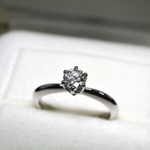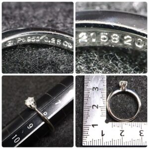 今回のリングはPt950素材で、刻印も明確でした。ミキモト ダイヤ リング 中古市場では、プラチナの純度や重量がベース評価となり、相場変動の影響を受けます。地金はデザインの一部としても重要で、爪の作りや厚みがしっかりしているかどうかも確認ポイントです。