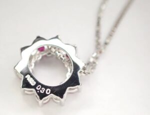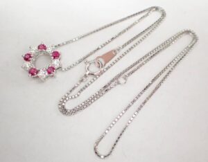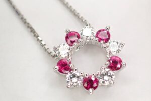 査定中に「ルイヴィトンを買取に出すときと宝石は違う?」というご質問もありましたが、ブランド製品はルイヴィトンのように一定の人気があることで安定した中古需要があります。ルビーを買取する際もブランド力が評価にプラスになることがありますが、何より宝石の質そのものとジュエリー全体の仕上がりが重要です。今回のネックレスはPt900の地金部分も良好でしたので、ルビーを買取する際の価値判断がしやすい状態でした。
