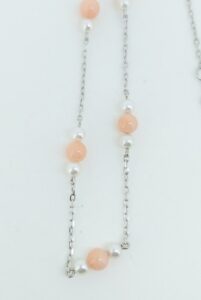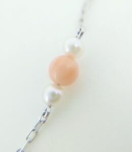 査定ではまずネックレスに使われている珊瑚の色味と表面の質感をチェックしました。ピンク系の色合いは柔らかな印象があり、ピンク珊瑚の買取価格やピンク珊瑚ネックレスの買取相場でも比較的安定した評価が出る傾向があります。今回のネックレスの珊瑚も高すぎない色味ながら均一で、艶やかな表面質感が評価に寄与しました。ただし、赤珊瑚と比べると一般的な需要や相場の高さではやや差がありますので、評価額にもその違いが反映されています。