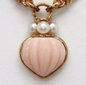 今回お持ち込みいただいたネックレスは、パールと珊瑚が組み合わされた上品なデザインのジュエリーでした。パール特有の柔らかな光沢と、珊瑚の温かみのある色合いが調和しており、落ち着いた雰囲気の中にも華やかさを感じられるお品物でした。こうした天然素材を組み合わせたジュエリーは、世代を問わず人気があり、中古市場でも安定した需要があります。
