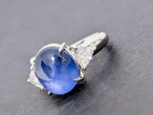 今回のスターサファイアは8.34ctと非常に大きなサイズでした。宝石はカラット数が大きくなるほど希少性が高くなり、市場価値も高くなる傾向があります。特にスターサファイアのような特殊効果を持つ宝石では、大粒でスターが美しく出るものは高く評価されることがあります。カラット数が大きい宝石はジュエリーとしての存在感も増すため、デザイン面でも評価されやすい特徴があります。