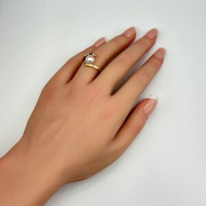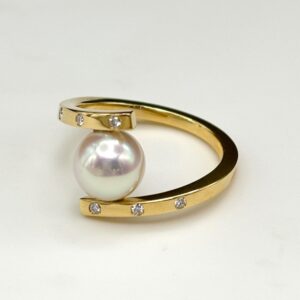 お預かりしたリングは、TASAKIならではの洗練されたデザインが際立つア・ファインバランスシリーズで、パールの柔らかな光沢とイエローゴールドのコントラストが美しい一本です。メレダイヤがさりげなくあしらわれており、ダイヤ カラット 値段という観点でも、主石だけでなく全体のバランスが評価につながる好例といえます。パールジュエリーは巻きやテリが重要ですが、ブランドの世界観が加わることで、一般的なダイヤモンド相場表だけでは測れない価値が生まれます。