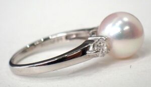 ダイヤモンドは4Cを基本に、今回のようなペアシェープカットではプロポーションや輝きのバランスも重視されます。0.43ctというサイズ感は、日常使いと資産性の両立という点で評価されやすく、プラチナ ダイヤ 指輪の買取価格を考える際の重要な要素です。アコヤパールについては、巻きの厚みや光沢、えくぼの出方を確認します。多少のえくぼがあっても、全体のテリが良好であれば、プラチナ リング 相場に大きなマイナスとはなりません。