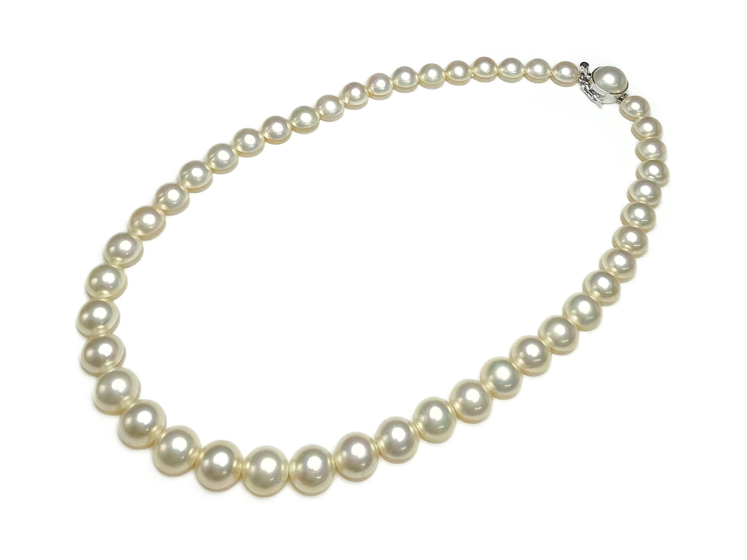 照りの強さや巻きの厚み、表面のキズやエクボの有無などが重要な評価基準となります。保存状態が良く、美しい輝きを保っている真珠ほど高く評価されます。ネックレスの場合は珠同士の大きさや色合いの揃いも大切なポイントです。